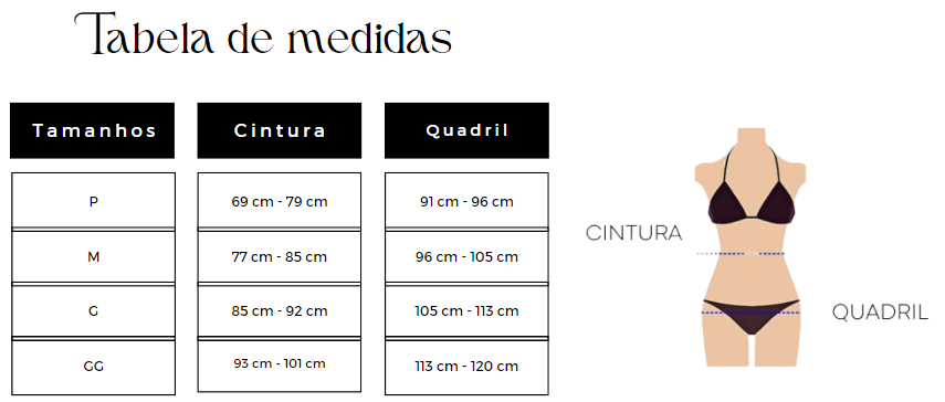 Obs: As medidas acima são aproximadas. Em caso de dúvida entre dois tamanhos, opte pelo tamanho maior.